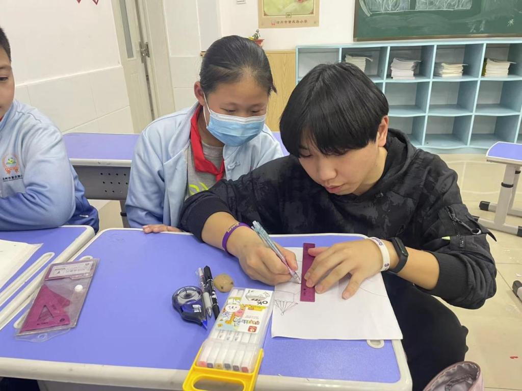 本次活動中,與第一次課堂不同的地方在于表現(xiàn)形式與手法。第一次的課堂以繪畫為主,但這次嘗試了新的授課內容,利用到剪紙、拼貼等動手活動,來讓同學們展現(xiàn)出自己心中家鄉(xiāng)的樣子,使變得生動有趣,以此來吸引同學們的注意力,提高學生的動手能力,進而加深大家對家鄉(xiāng)的理解。